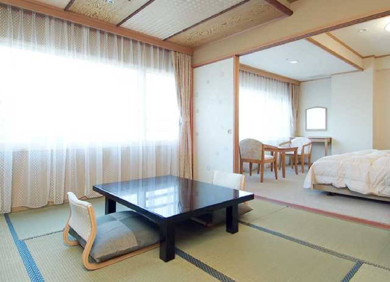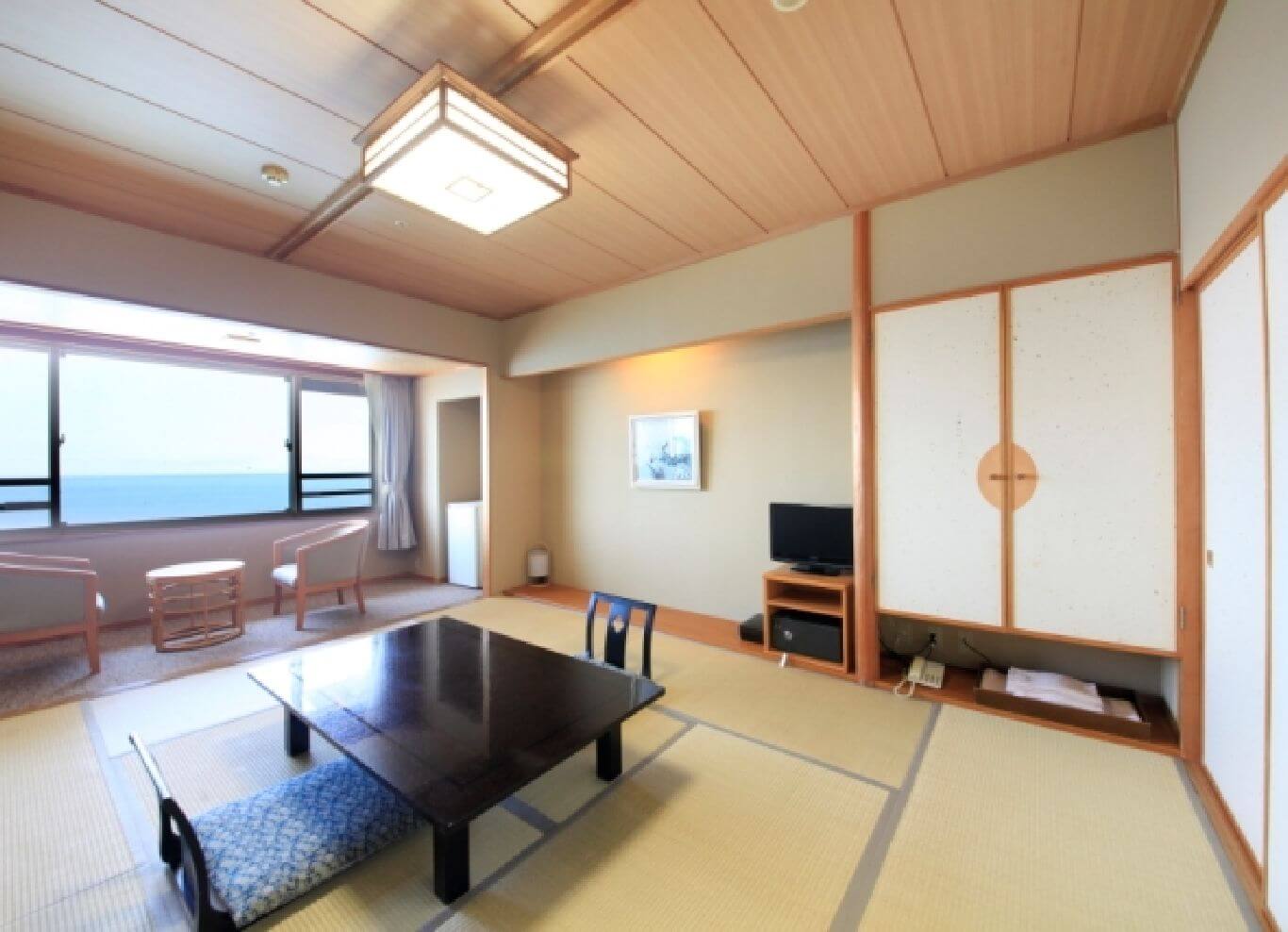 在日式客房内,您仿佛置身于潮汐声中……。